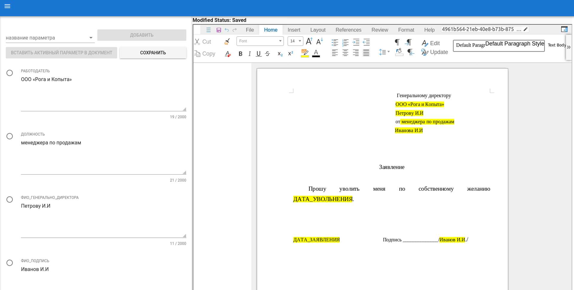Скачивайте образцы документов, шаблоны заявлений, бланки резюме, договоров и отрывных объявлений или создавайте собственные.Краткий курсУрок 3. Создание документа дела из шаблона. 23 Jul 2021Урок 2. Ведение дел в docx cloud. 22 Jul 2021Урок 1. Создание шаблона документа из docx. 21 Jul 2021Укажите свой email для получения доступа: Мне нужен образец документа: Или свяжитесь с нами напрямую